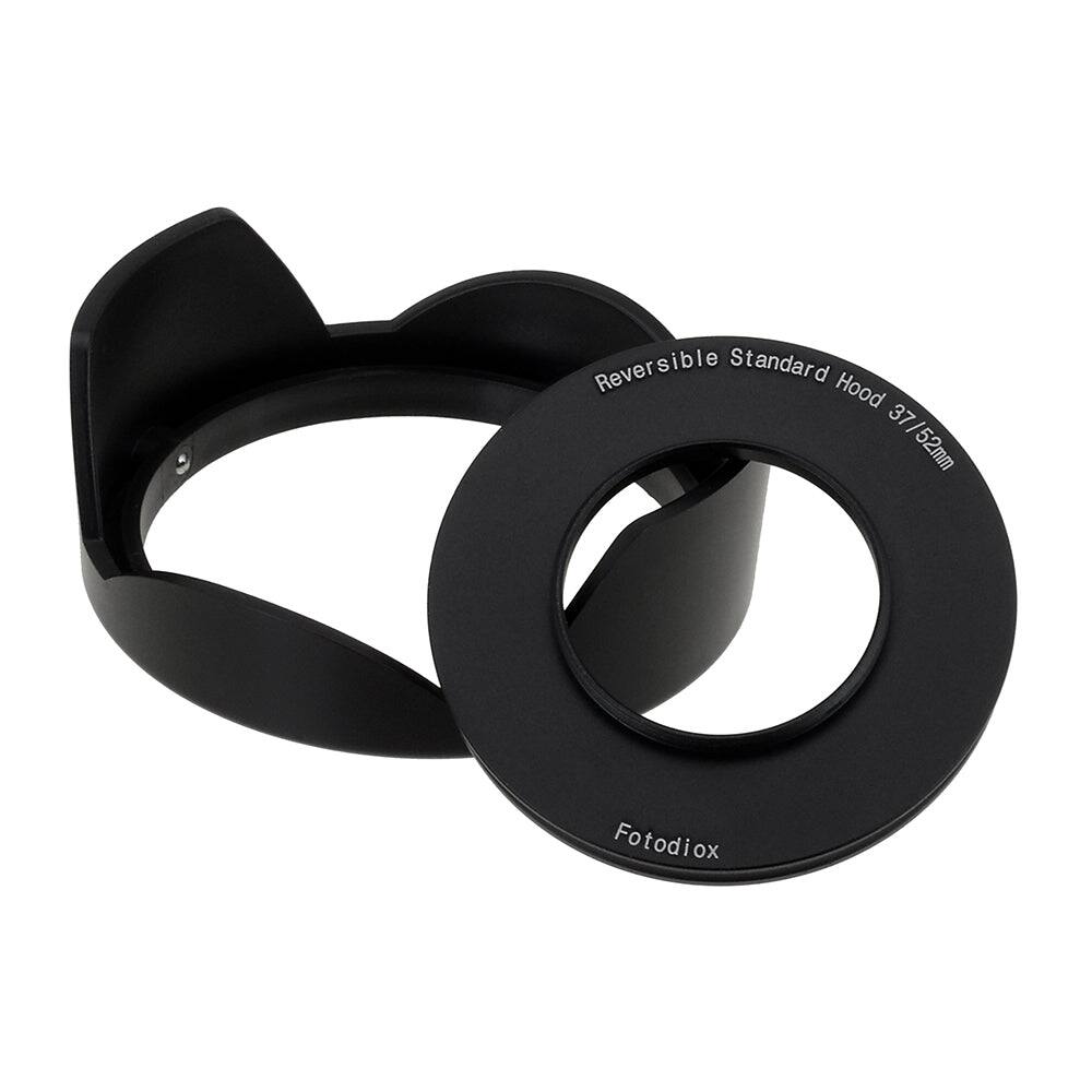 The Fotodiox reversible lens hood is a flower-style accessory designed to enhance your photography by preventing lens flare and reducing sun glare. It attaches via a mounting ring that screws directly onto the lens, allowing the hood to snap on and off easily. This design provides access to filter threads and enables the hood to be reversed for compact storage without removing filters or lens caps. Crafted from durable materials, it offers reliable performance and includes a 2-year limited manufacturer warranty.