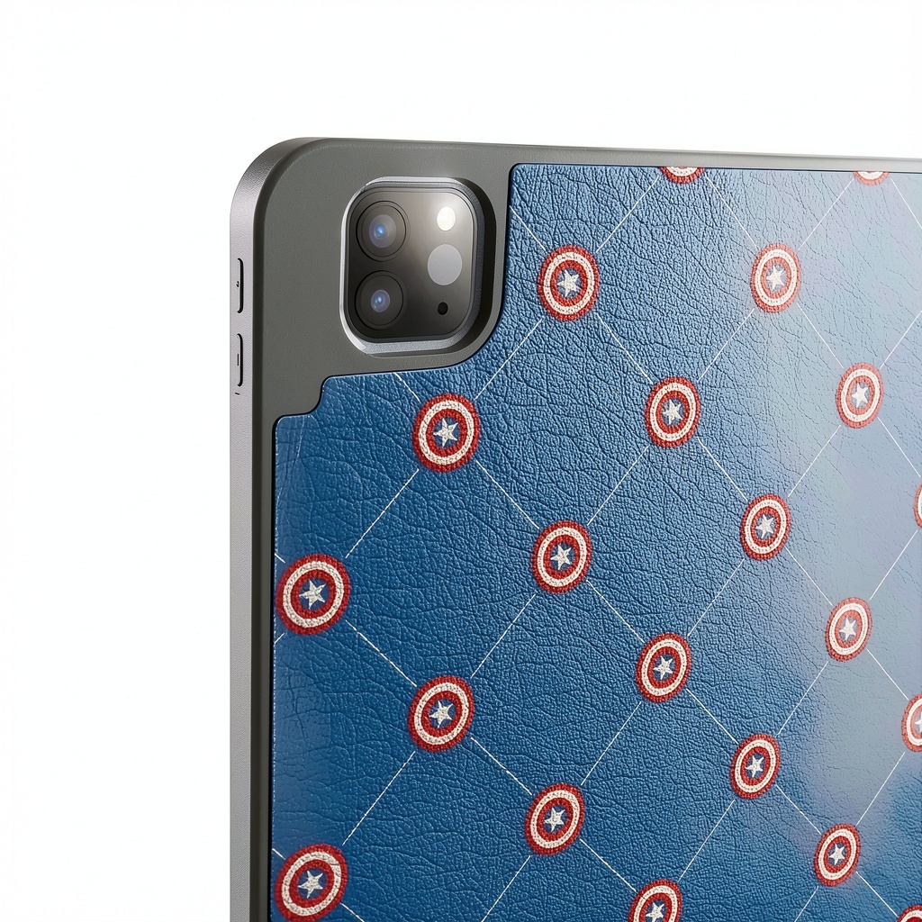 This iPad case from Keyscaper is engineered for both style and protection, featuring officially-licensed Marvel designs that showcase your favorite characters like Captain America, Fantastic Four, Miles Morales, Spider-Gwen, and Spider-Man. Crafted from high-quality PU leatherette with a soft microfiber lining, it ensures your iPad remains safe from accidental bumps and scratches. The case includes a soft TPU frame to securely hold your iPad and Apple Pencil, while the cover folds behind for effortless use. With dual standing positions, users can easily adjust the viewing angle for typing, watching videos, or reading. Designed and decorated in Tualatin, Oregon, USA, each case boasts rich, vibrant printing that brings your loyalty to life, making it a perfect accessory for everyday use.