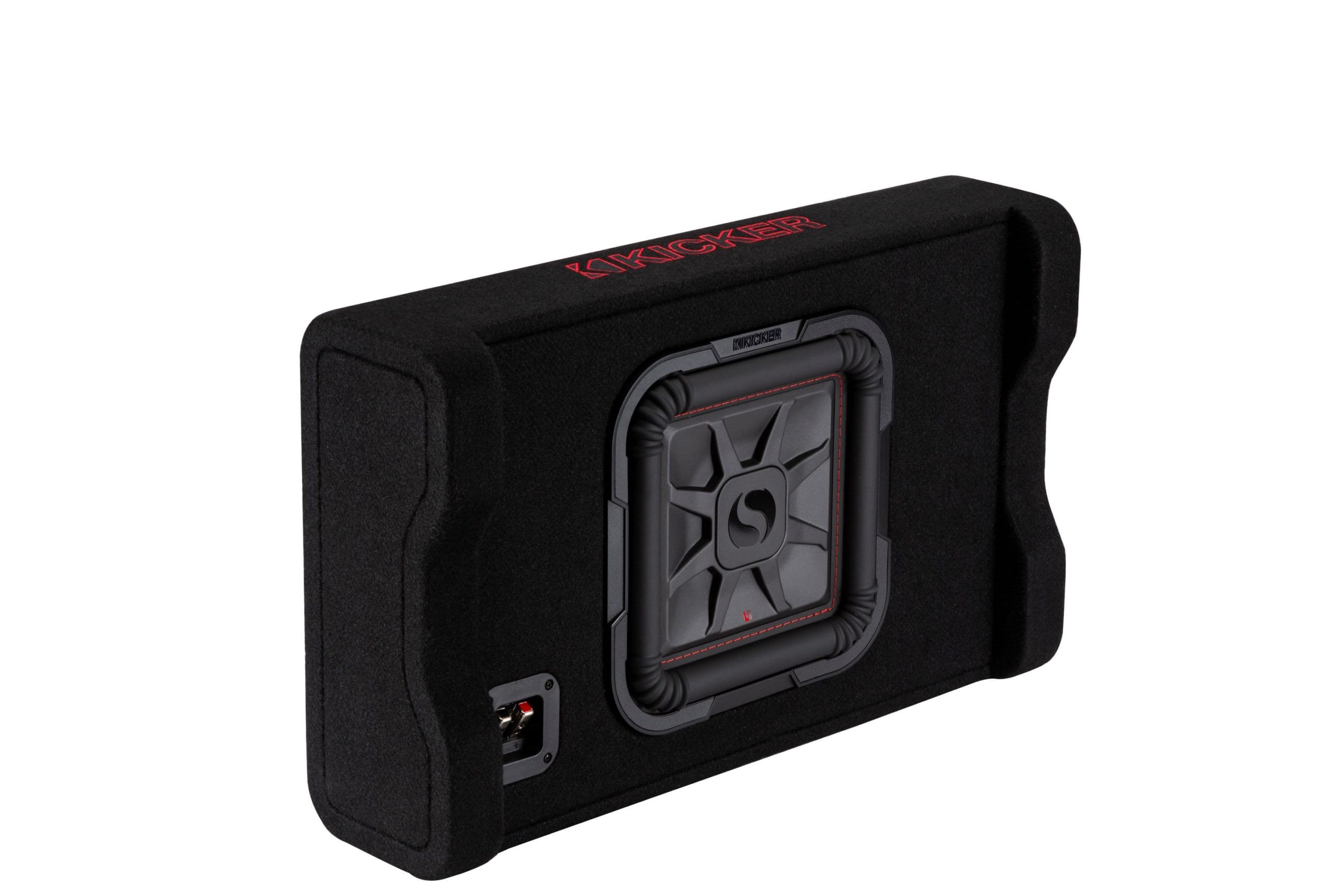 The KICKER L7T 10-inch down-firing enclosure subwoofer is engineered to fit under many truck seats, providing robust bass performance without sacrificing space. Its square L7T design and forced-air cooling ensure high power handling and durability, making it perfect for upgrading your car audio system. Enjoy enhanced sound quality and reliable operation in various driving conditions.